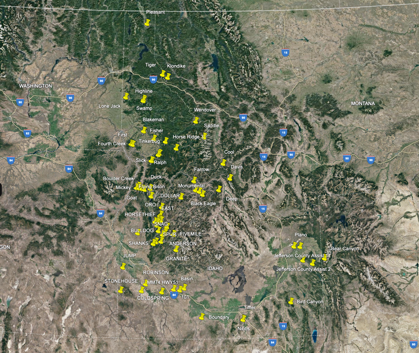 I created the above map of all the new fires that started in this outbreak. That's seventy-five new fires on that map. Fifty-seven of those new fires started between noon and midnight Monday as the storms passed through. We saw a mix of fire behavior; higher elevations saw light growth, while the SW Idaho highlands and rangelands across the state saw a lot of extreme fire behavior. I keep saying it, but I'll say it again – we're insanely lucky to see the light to moderate fire behavior we're (generally) seeing in the Central Idaho mountains. Aside from two specific days of the Bench Lake Fire near Redfish Lake, I don't think I've seen a single Central Idaho (or any other high-elevation forest) fire make a sustained run. It's bad, but we could be so much worse right now...