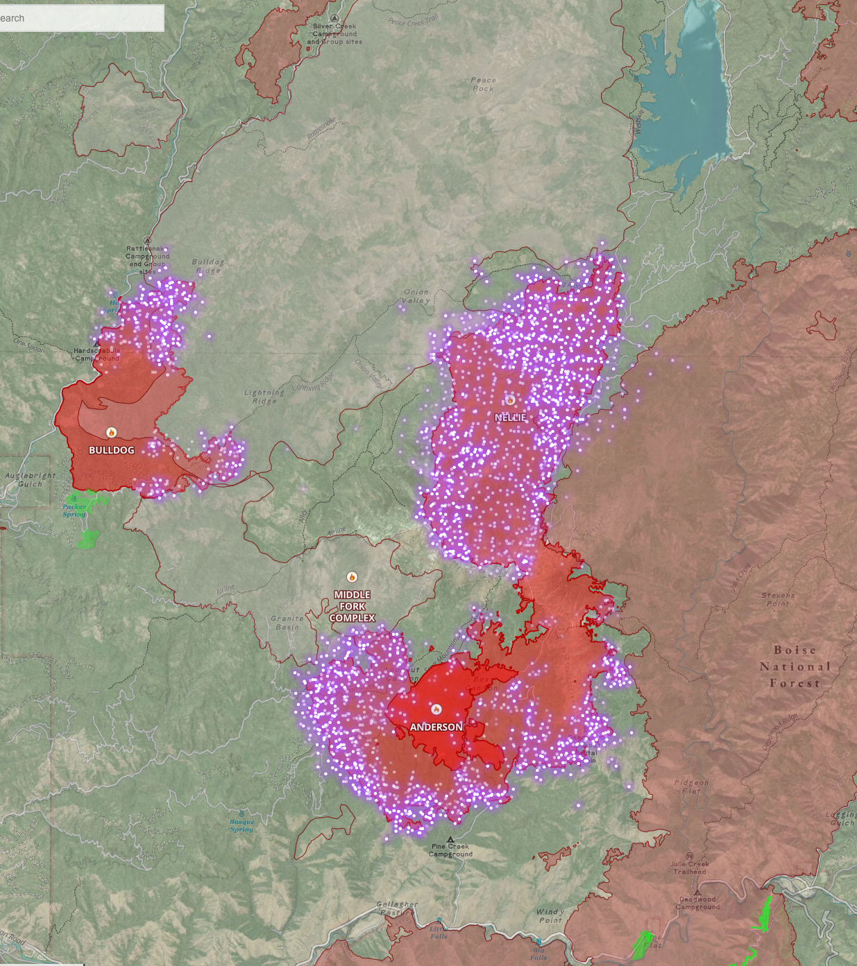 It will be very interesting to see what the behavior in the older fire areas is over the next couple of days. My main concern for this fire is Elk Creek; I'm really hoping that the fire stays on the south side of the Sawtooth and doesn't get established in Elk Creek, as fire in that drainage would likely be very intense with room to run in ways we'd rather it not.