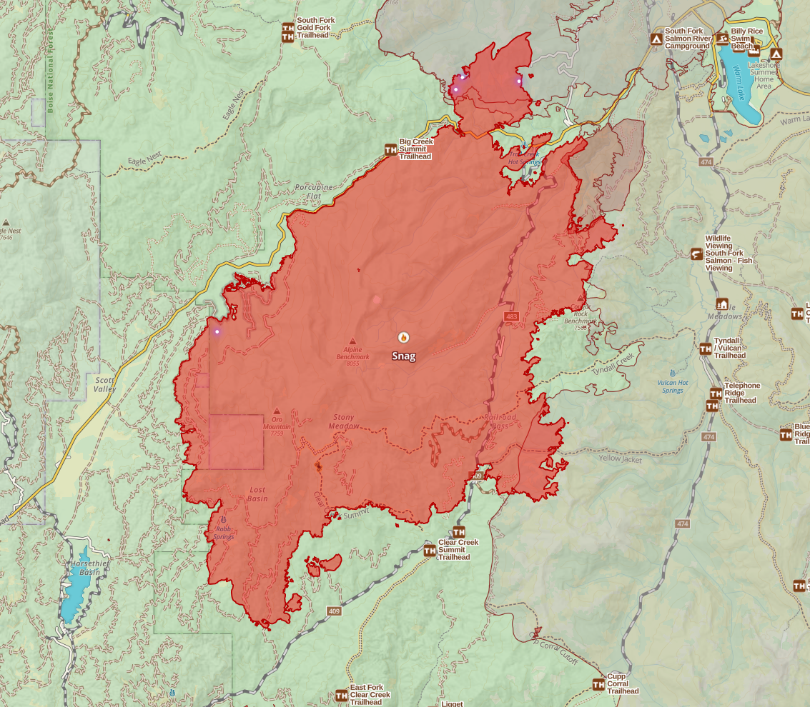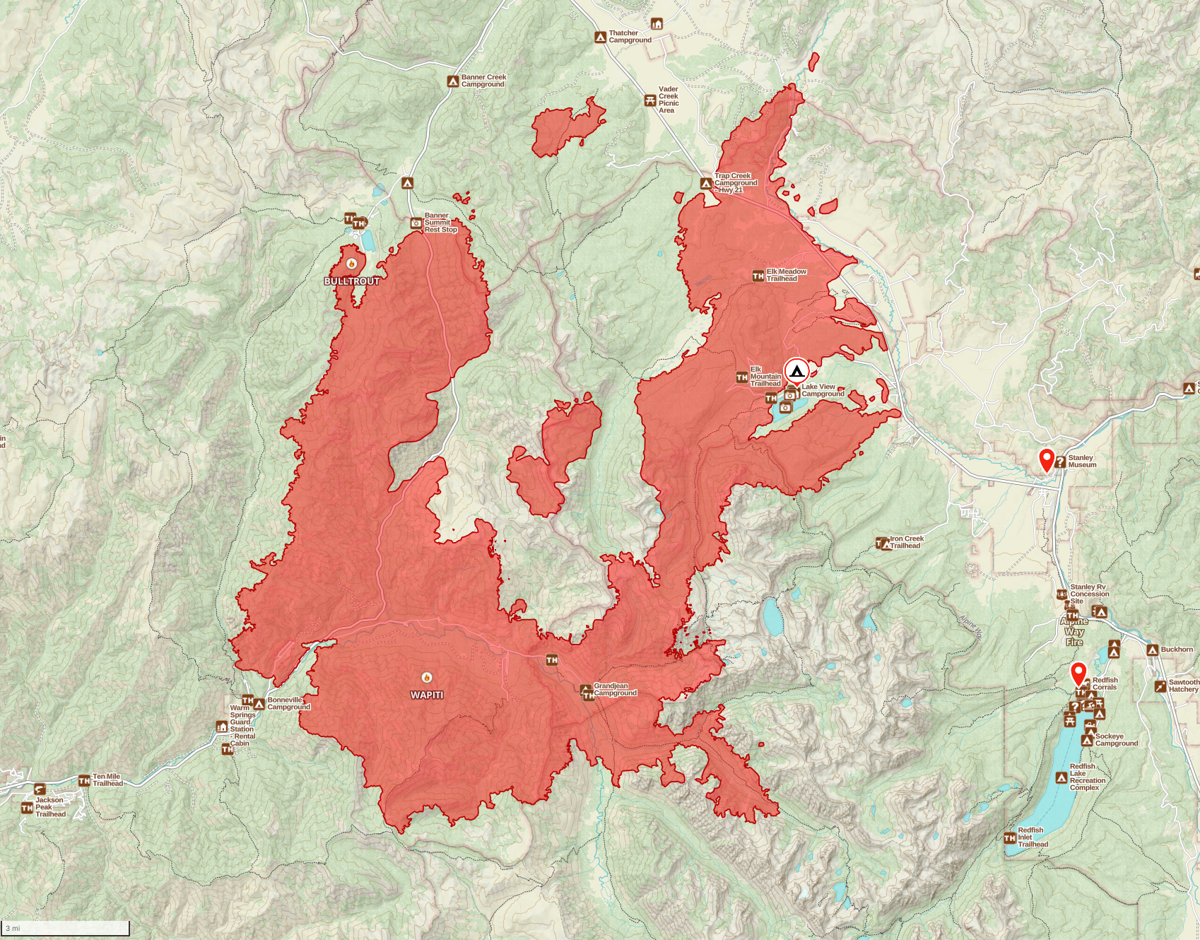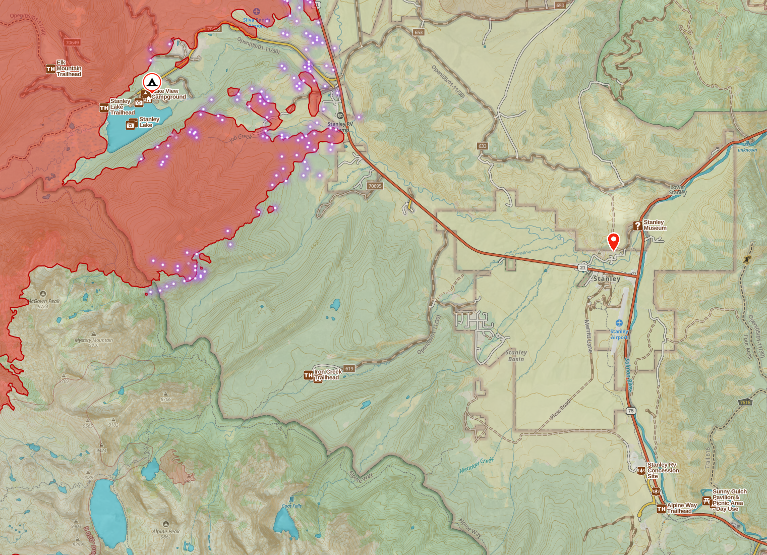 In the interest of getting through this before everything changes, I have a few bullet points around the fire and a gallery with a few detailed maps below. Then, I'll focus on the Stanley Basin and the firing operation in Stanley tonight. (monitoring that is why it's taking me so long to get this posted today)