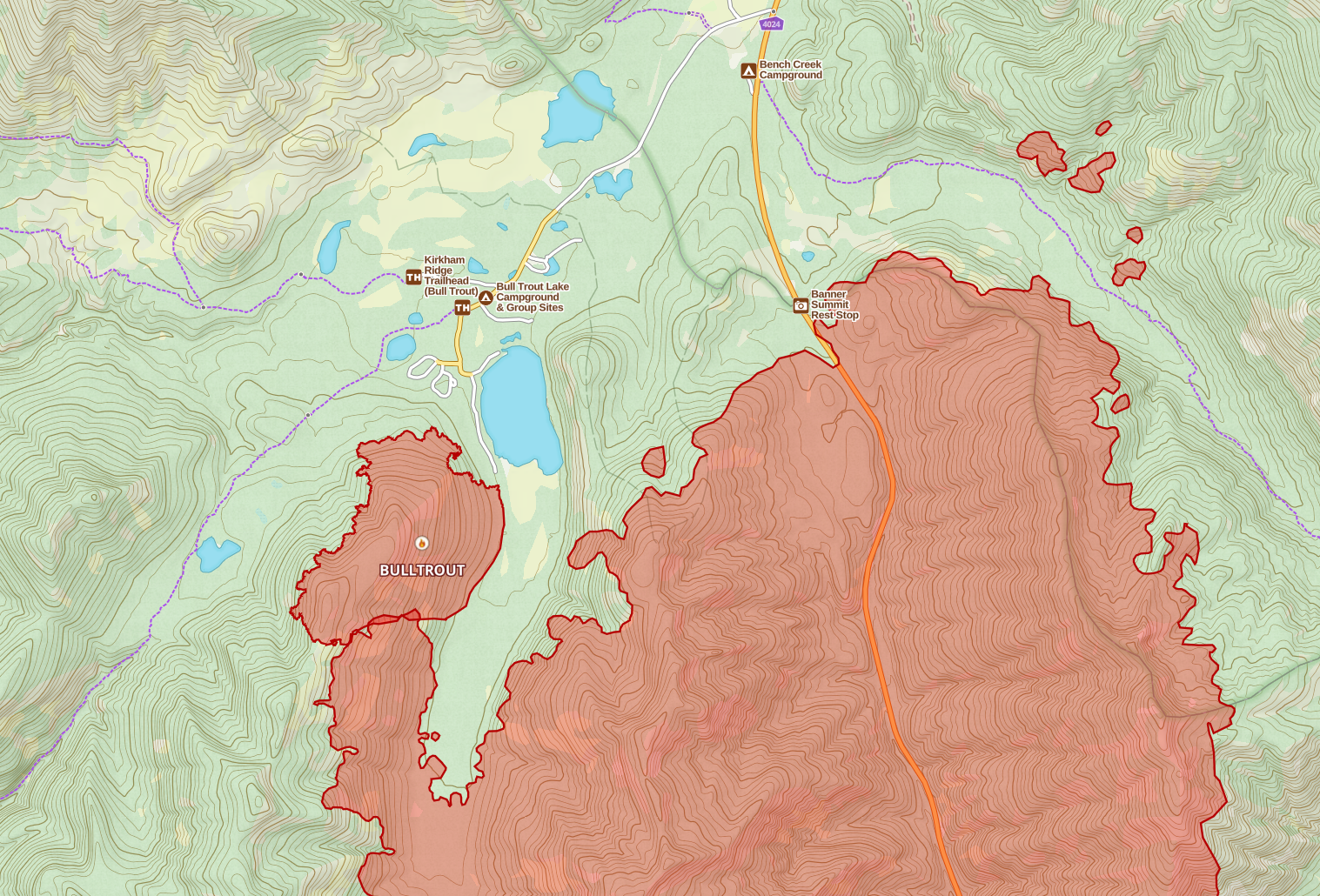 - The fire has consumed the Bulltrout fire at Bull trout lake.
