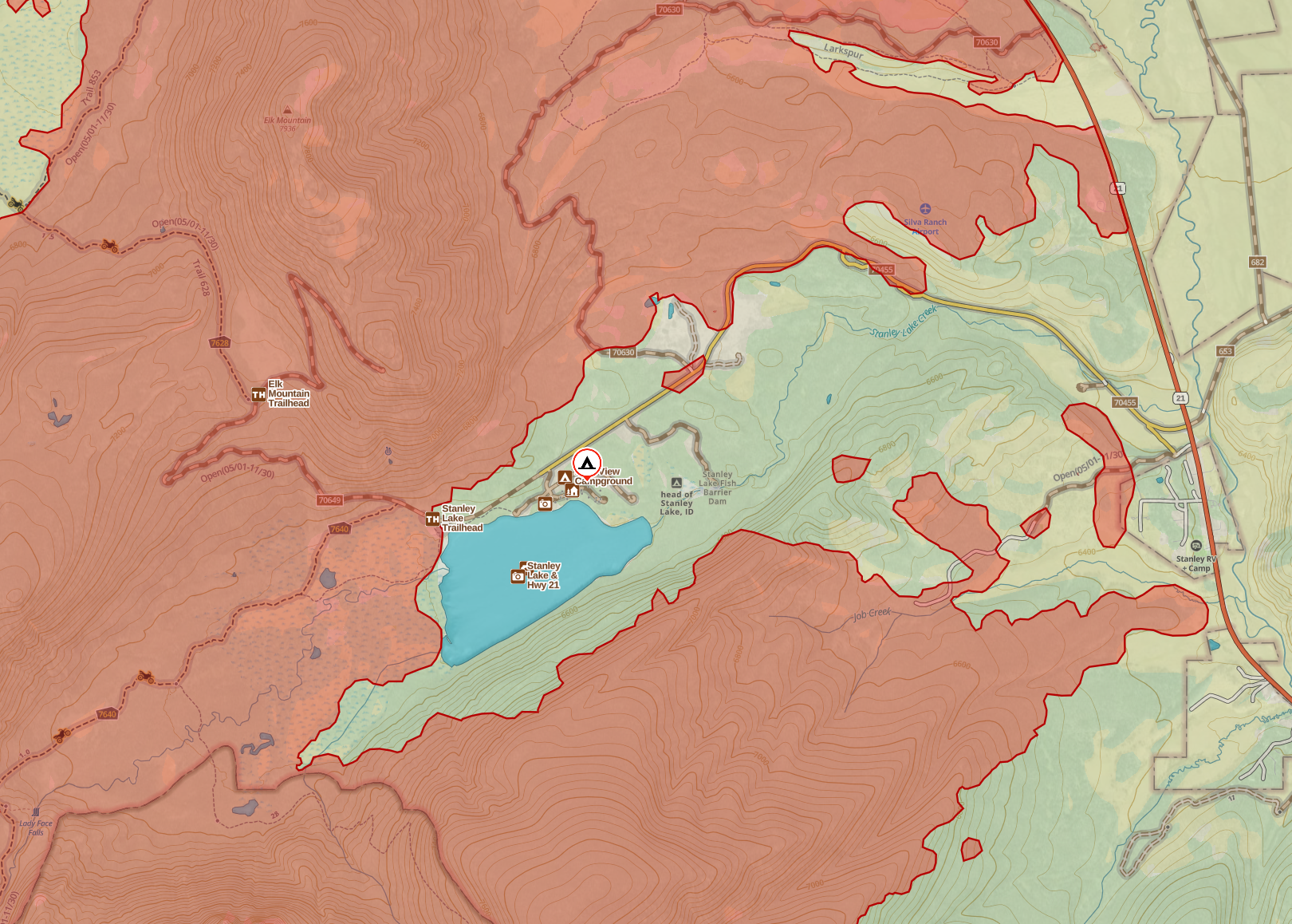 - Stanley Lake Campground hasn't burned. Given winds and weather predicted, 50/50 chance it does. Though I'm somewhat hopefull they'll have resources to protect it if it hasn't burned in the next 24 hours or so.